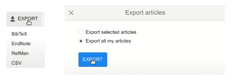 Go to your Google Scholar profile and make sure to check the box to select all your articles. This way, you will enable the “Export” button.